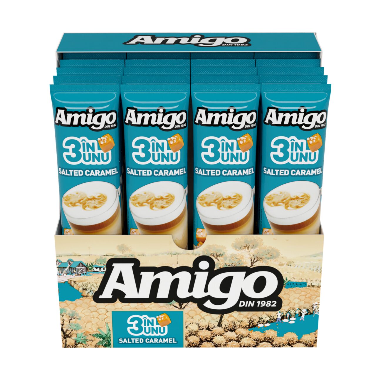 AMIGO 3in1 Salted Caramel 13g – Dulce și sărat, perfect echilibrat într-o cafea instant!