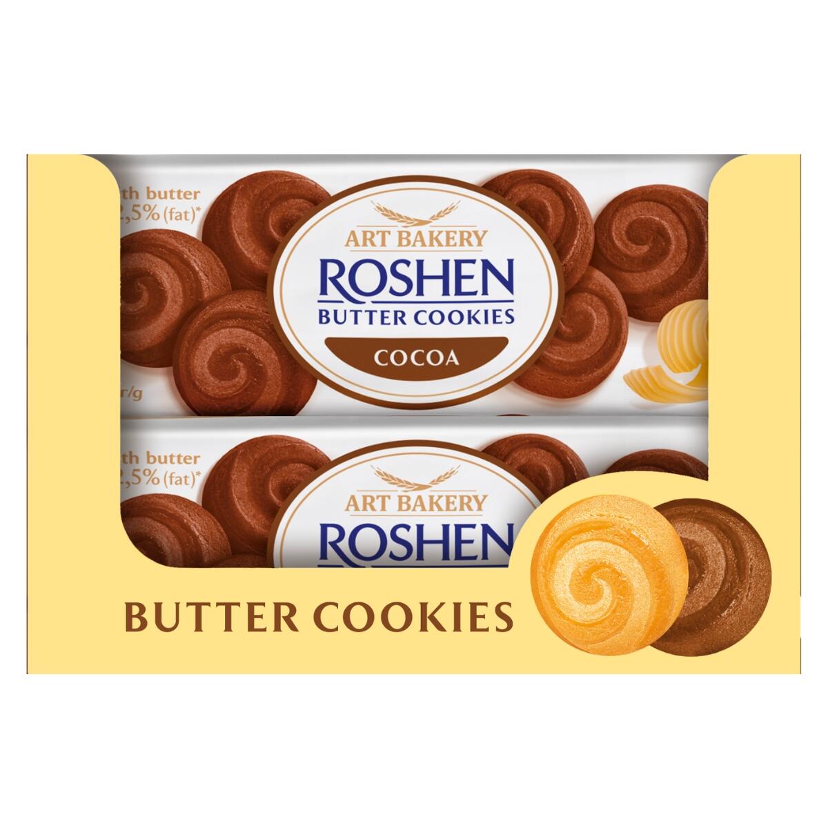 Biscuiții Roshen cu unt și cacao, ambalați în 140 g, oferă un gust bogat și echilibrat, combinând aroma fină de unt cu delicatețea ciocolatei. Textura crocantă și savuroasă a biscuiților îi face ideali pentru gustări, alături de ceai sau cafea, sau pentru momente de răsfăț dulce.