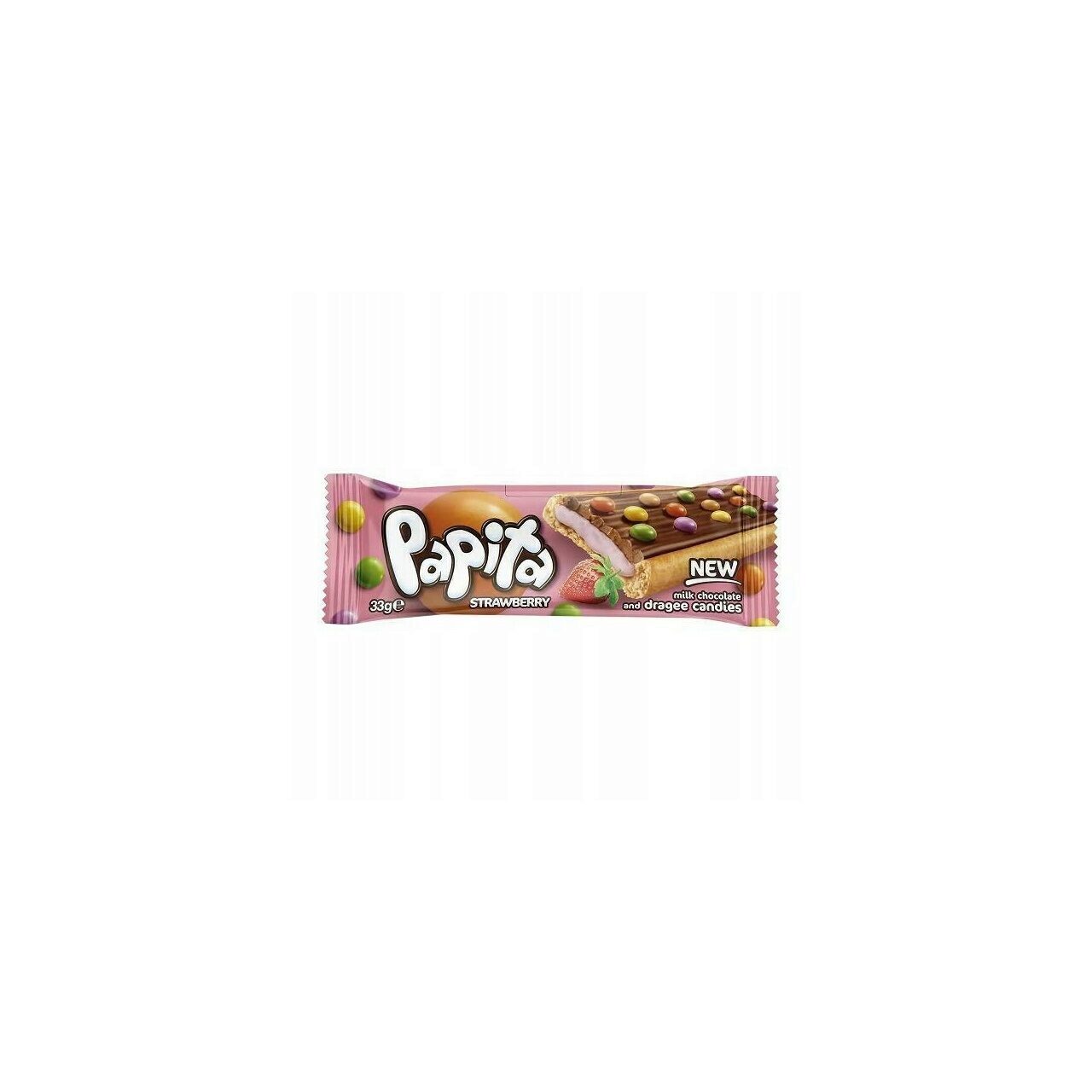 Biscuit crocant cu crema de capsuni si drajeuri Papita 33g