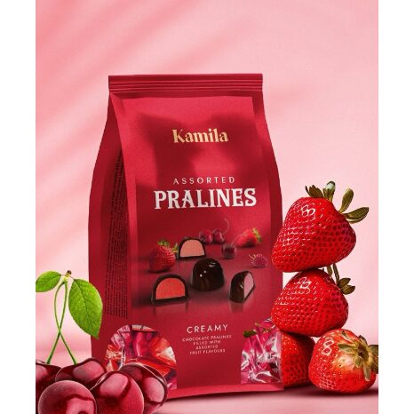 Bomboane de ciocolată Kamila cu umplutură de căpșuni și cireșe – 750 g