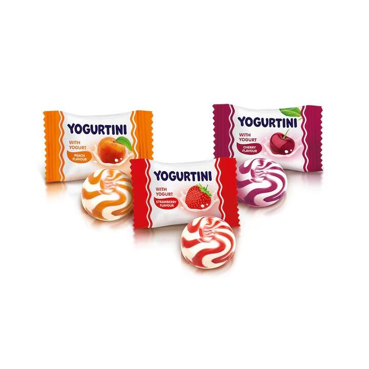 Yogurtini sunt dropsuri cu fructe si umplutura crema delicioasa de iaurt si arome de cirese, piersica si capsuni. Fiecare bomboana este ambalata individual.