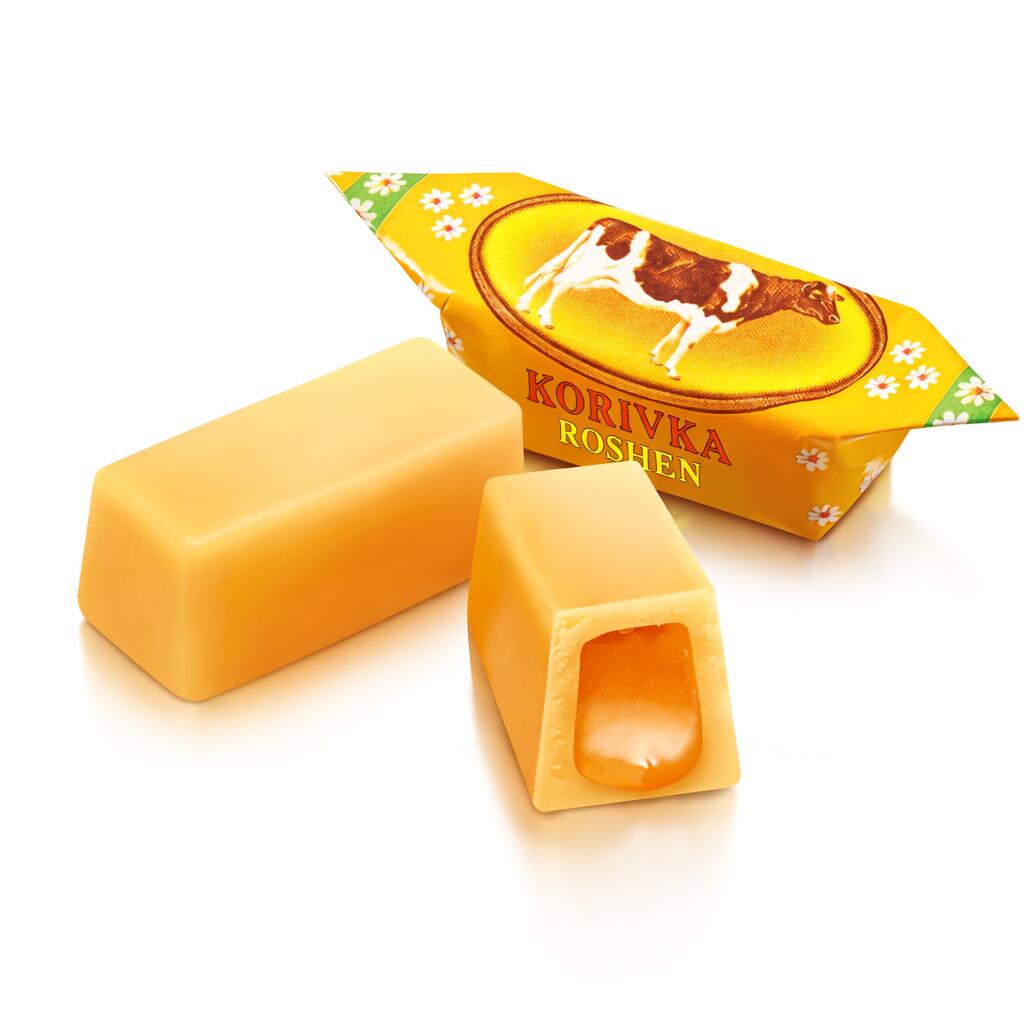 Roshen Korivka bomboane neglazurate fondante cu lapte, produse dupa reteta clasica proprie. Datorita ingredientelor de calitate si tehnologiei de productie de ultima generatie, umplutura bomboanelor Korivka Roshen isi pastreaza proprietatile si ramane lichida.