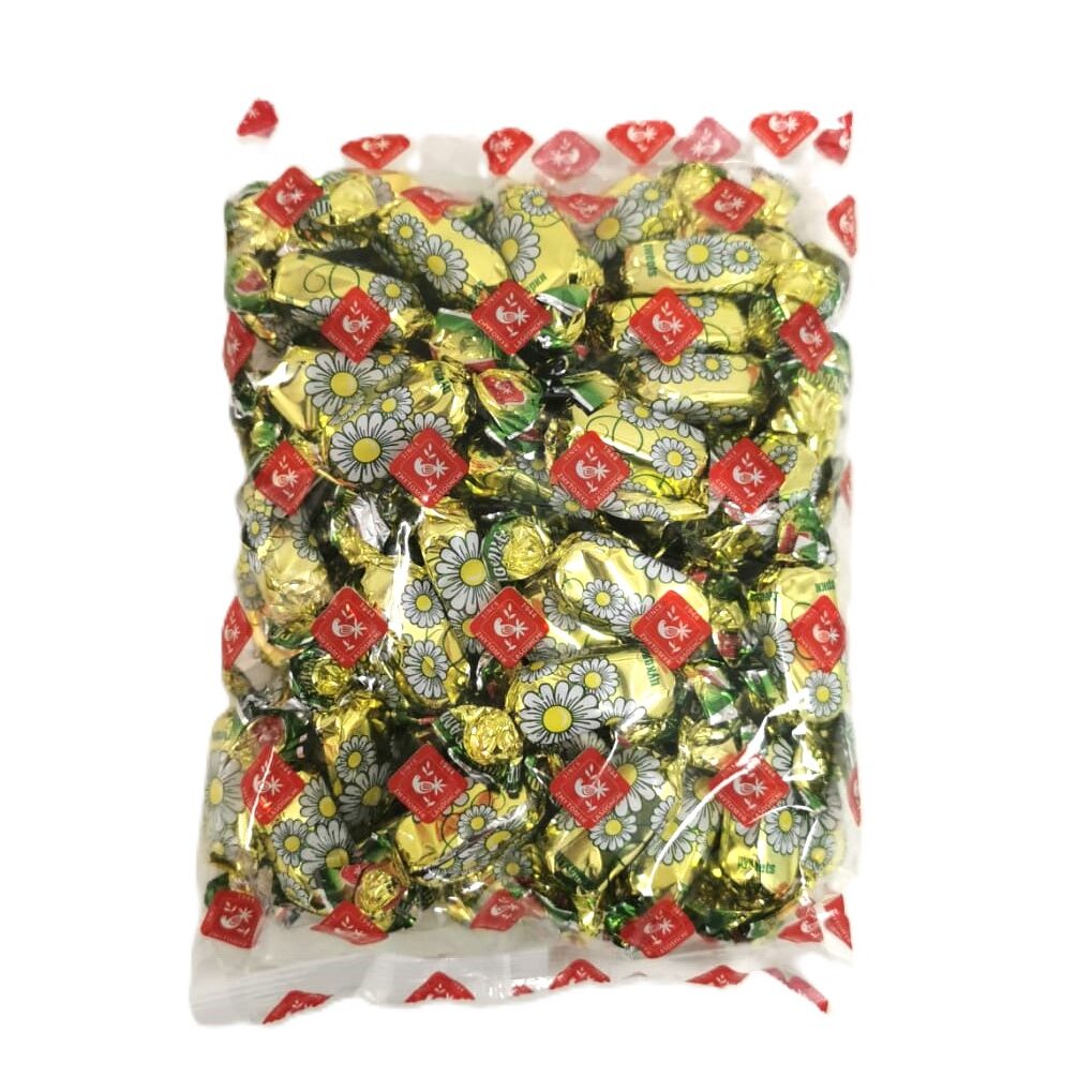 Bomboanele White Camomile, ambalate în format de 1 kg, sunt praline cu umplutură fină, realizate pentru a oferi un gust delicat și aromat. Fiecare bomboană combină textura moale a umpluturii cu note subtile și rafinate, inspirate de aroma de mușețel, creând o experiență dulce elegantă.