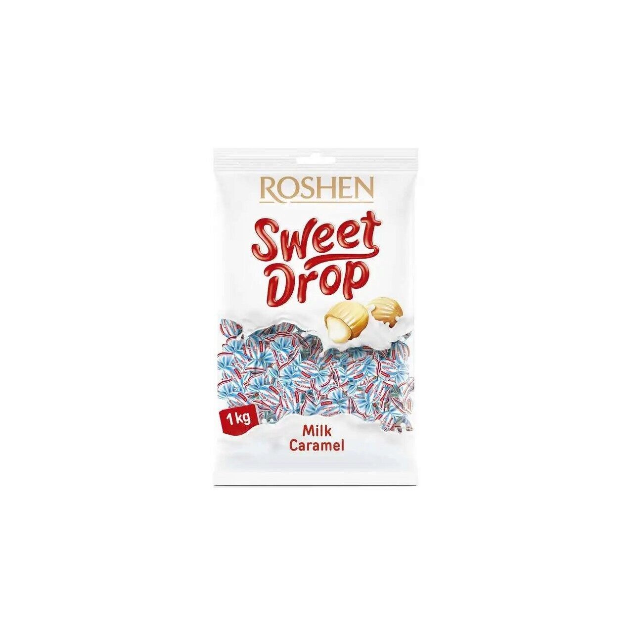 Sweet Drop Roshen sunt bomboane cu lapte si umplutura crema de lapte si caramel Roshen. Textura exterioara fina cu aroma de caramel impreuna cu umplutura de lapte din interior formeaza un echilibru perfect al gustului clasic de bomboana cu lapte. Roshen Sweet Drop sunt o experienta unica cu gust de lapte, caramel fin si aroma de vanilie. Sunt ambalate individual si disponibile in punga de 1 kg.