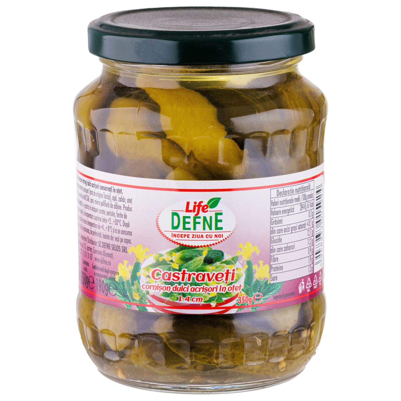 Produs de post Castraveti in otet 1-4 cm 370 ml Defne