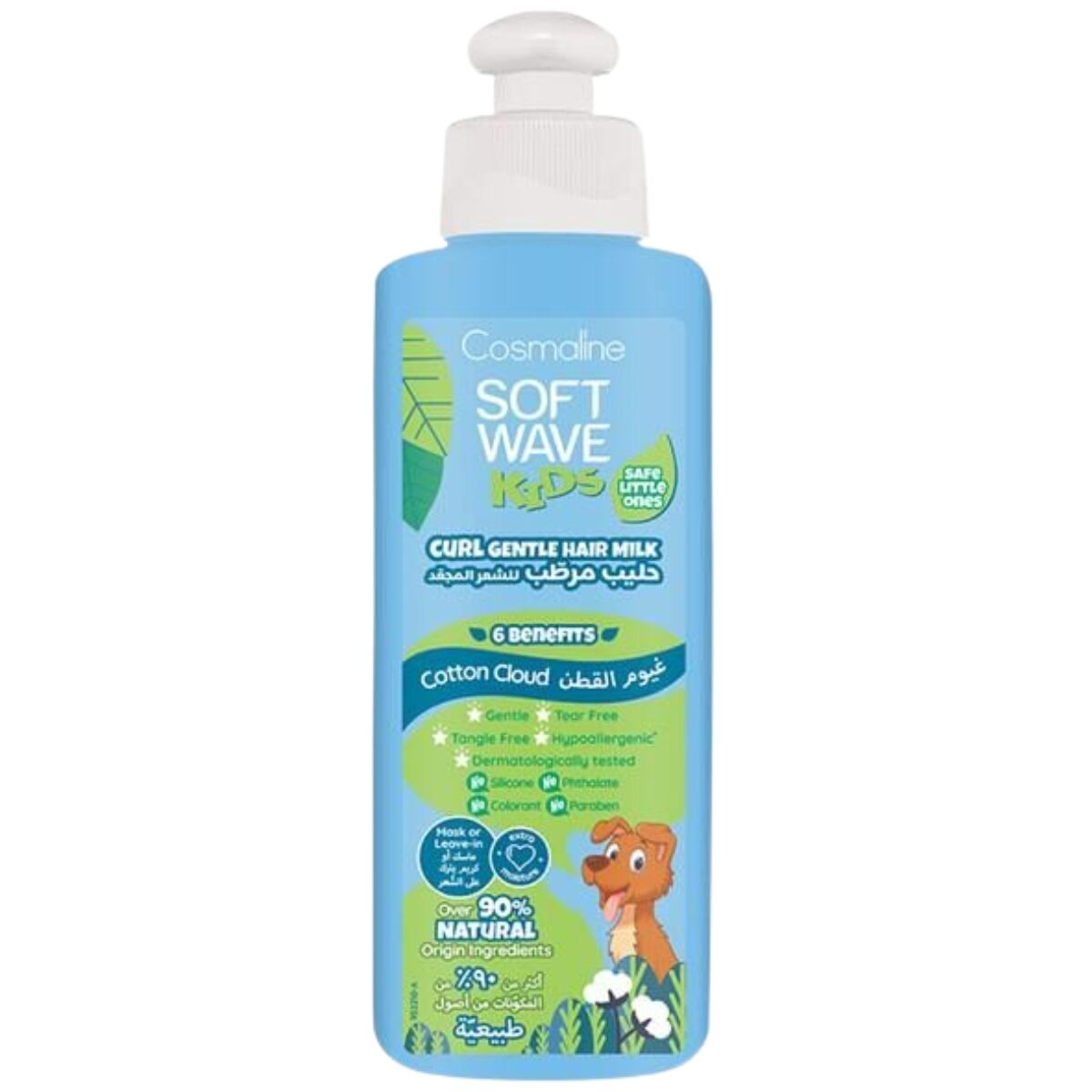 Cosmaline Soft Wave Kids Curl Cotton Cloud Gentle Hair Milk este un balsam leave-in hidratant special creat pentru părul creț și ondulat al copiilor. Formula sa delicată hidratează firul de păr fără să îl încarce, ajutând la definirea naturală a buclelor și la prevenirea efectului de frizz.