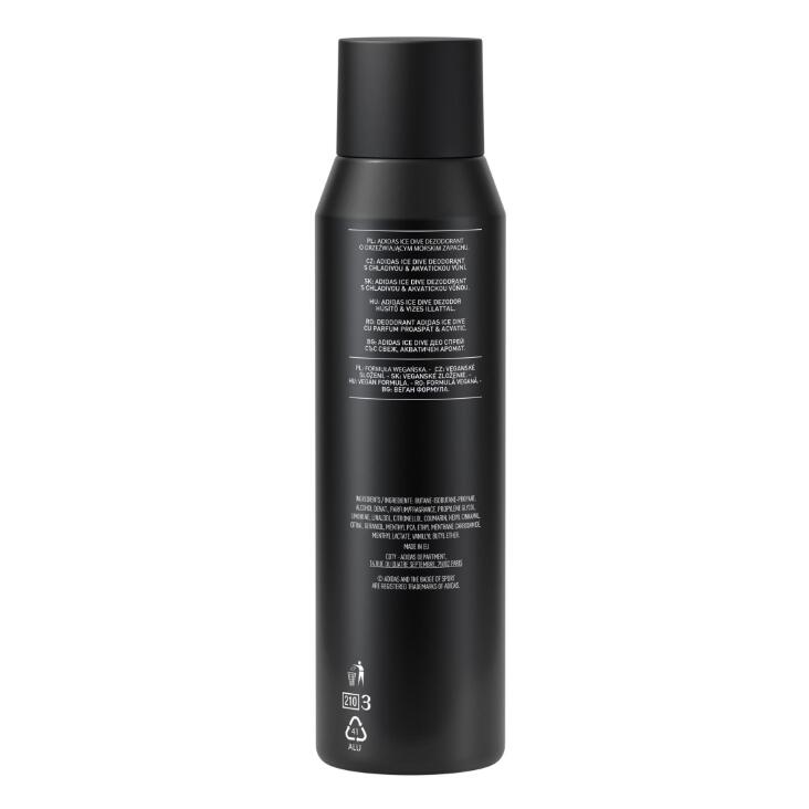 Deodorantul spray de corp adidas Ice Dive, cu un parfum ce persista 48 de ore, este ideal pentru cei care isi traiesc viata in viteza si au spirit de indrazneala si aventura. Formula vegana nu pateaza hainele.