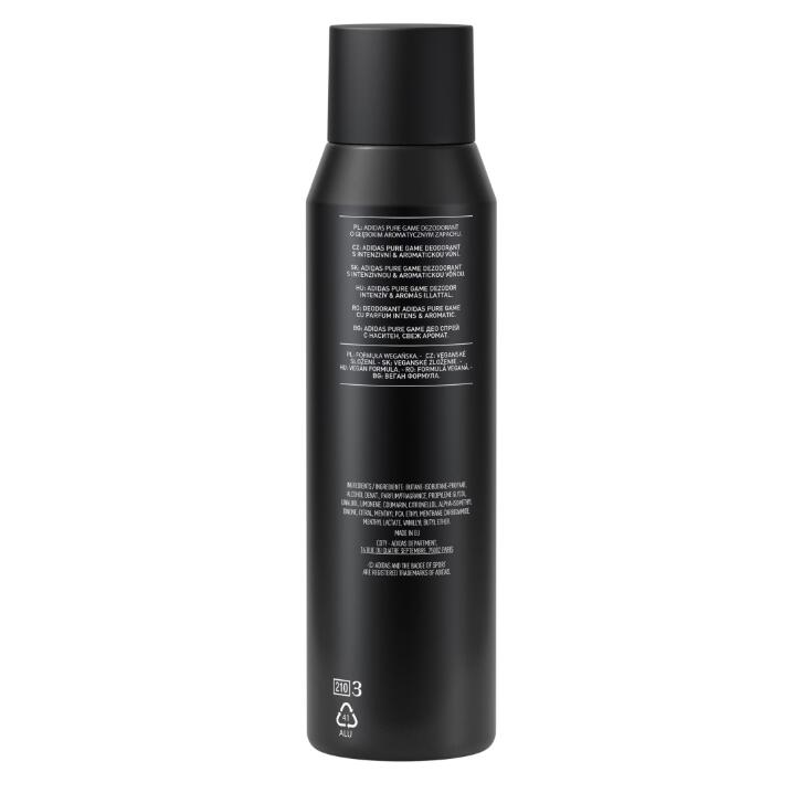 Deodorantul spray de corp adidas Pure Game, cu un parfum ce persista 48 de ore, este ideal pentru cei care traiesc viata la maxim. Formula vegana nu pateaza hainele.