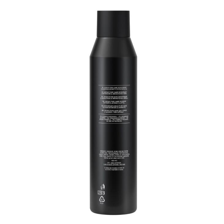 Deodorantul spray de corp adidas Pure Game, cu un parfum ce persista 48 de ore, este ideal pentru cei care traiesc viata la maxim. Formula vegana nu pateaza hainele.