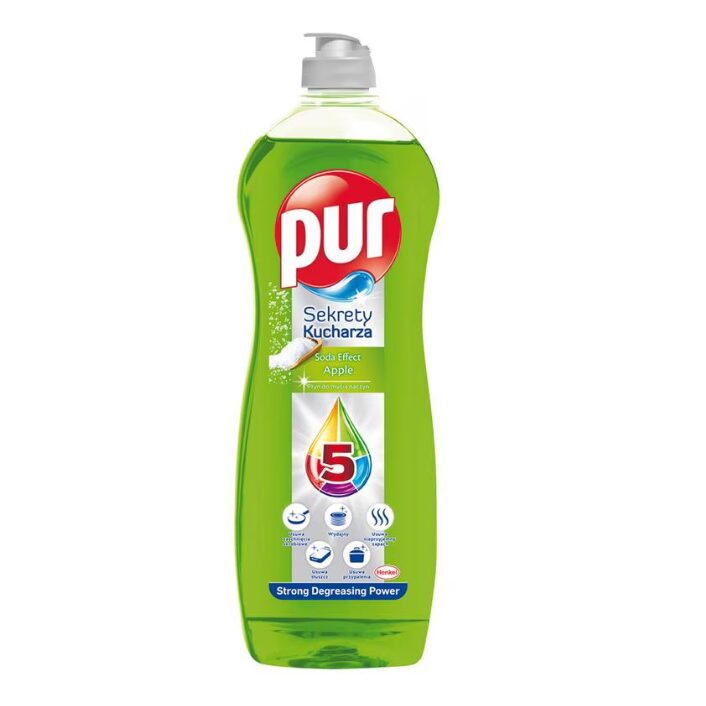 Pur Lichid de spălat vase cu parfum de măr, 750 ml este soluția ideală pentru o curățare eficientă și rapidă a vaselor. Datorită formulei sale concentrate, acest detergent lichid îndepărtează cu ușurință grăsimea și murdăria persistentă, chiar și în apă rece.