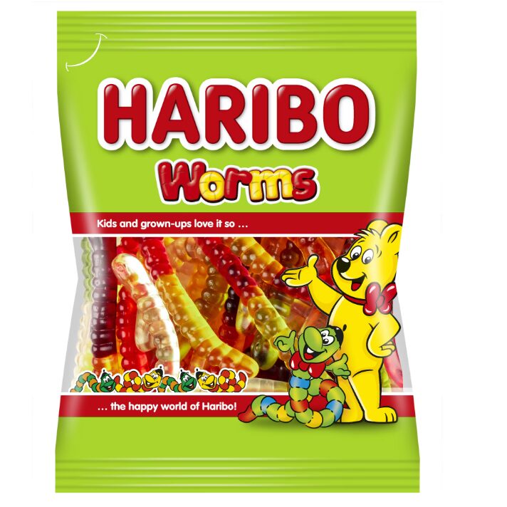 In ce parte ar trebui sa muscati mai intai? Fiecare cu doua arome diferite, Viermii HARIBO vor fi cu siguranta un succes cu fanii gumei de fructe mari si mici. Fie ca sunt capsuni si ananas, portocale si caise, sau zmeura si lamaie, fiecare capat este delicios la nesfarsit.