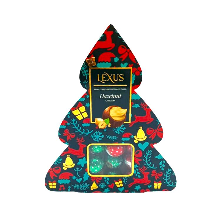 Bomboanele LEXUS cu lapte și cremă de alune sunt delicii dulci, perfecte pentru momente festive sau cadouri de sărbători. Fiecare bomboană combină ciocolata fină cu o cremă catifelată de alune, oferind o experiență echilibrată între dulceață și aromă. Cutia în formă de brad de Crăciun de 120 g adaugă un plus de eleganță și este ideală pentru cadouri sau decorul de sărbători.