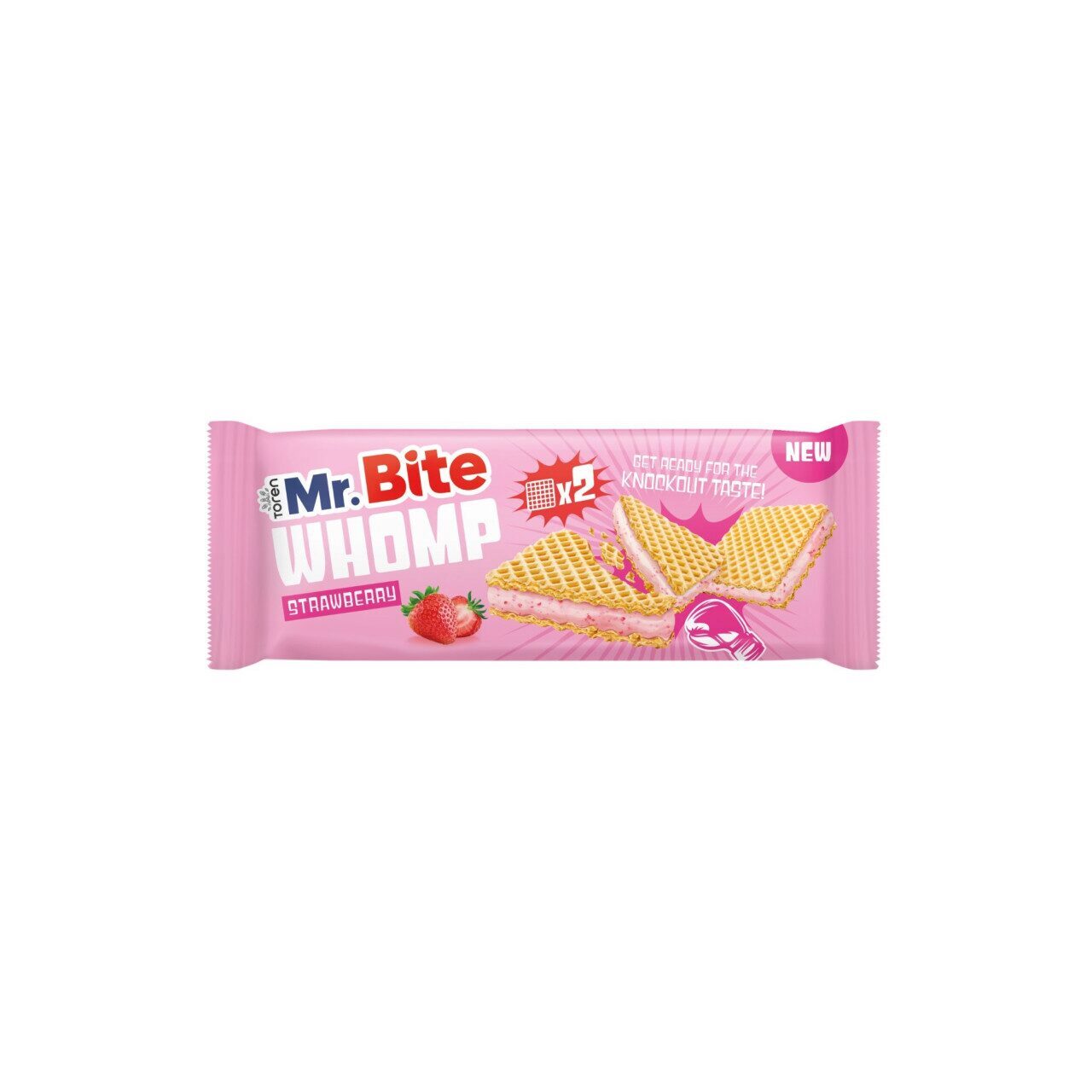Mr. Bite Whomp Strawberry este o nouă gustare de napolitană de la Toren, cu napolitane crocante umplute cu umplutură cremoasă de căpșuni. Fiecare pachet contine 2 napolitane si promite un "gust knockout" pentru iubitorii de gustari dulci.