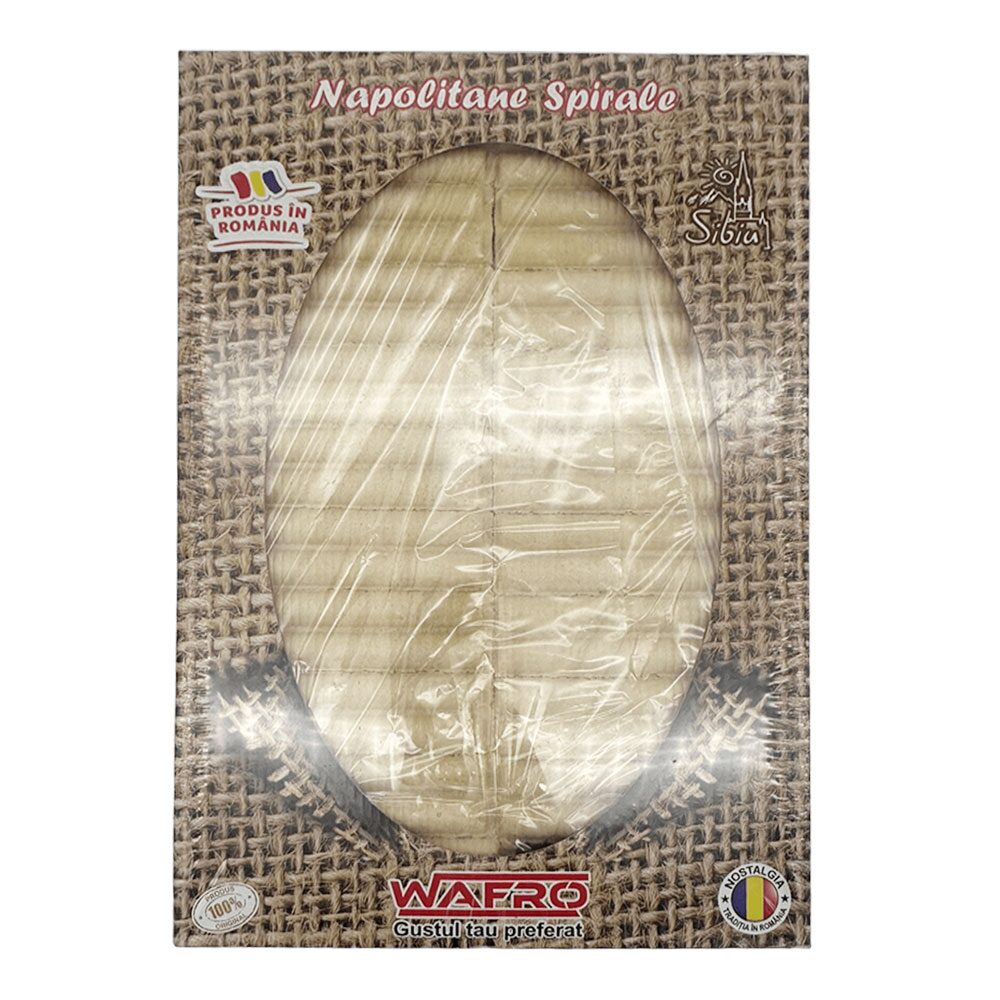 Napolitane crocante, umplute cu crema fina cacao, lapte, lamaie, vanilie, capucino, cocos, sau glazurate in ciocolata, ambalate individual sau vrac, ambalate in cutii de carton sau galetuse de plastic