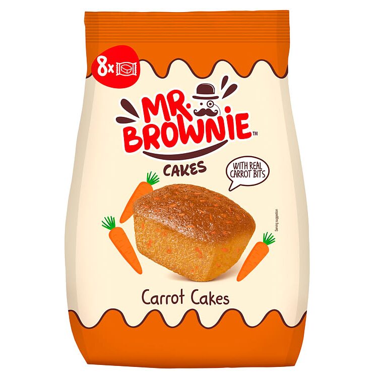 Prăjitură cu morcov Mr. Brownie 200 g – desert savuros, cu blat moale și aromat, îmbogățit cu morcov pentru un gust echilibrat și natural. Textură pufoasă și ingrediente de calitate, fără ulei de palmier, coloranți sau arome artificiale. Ambalată individual pentru prospețime și comoditate. Ideală pentru gustări acasă, la birou sau în deplasare. Alege Mr. Brownie cu morcov pentru un moment dulce și reconfortant!