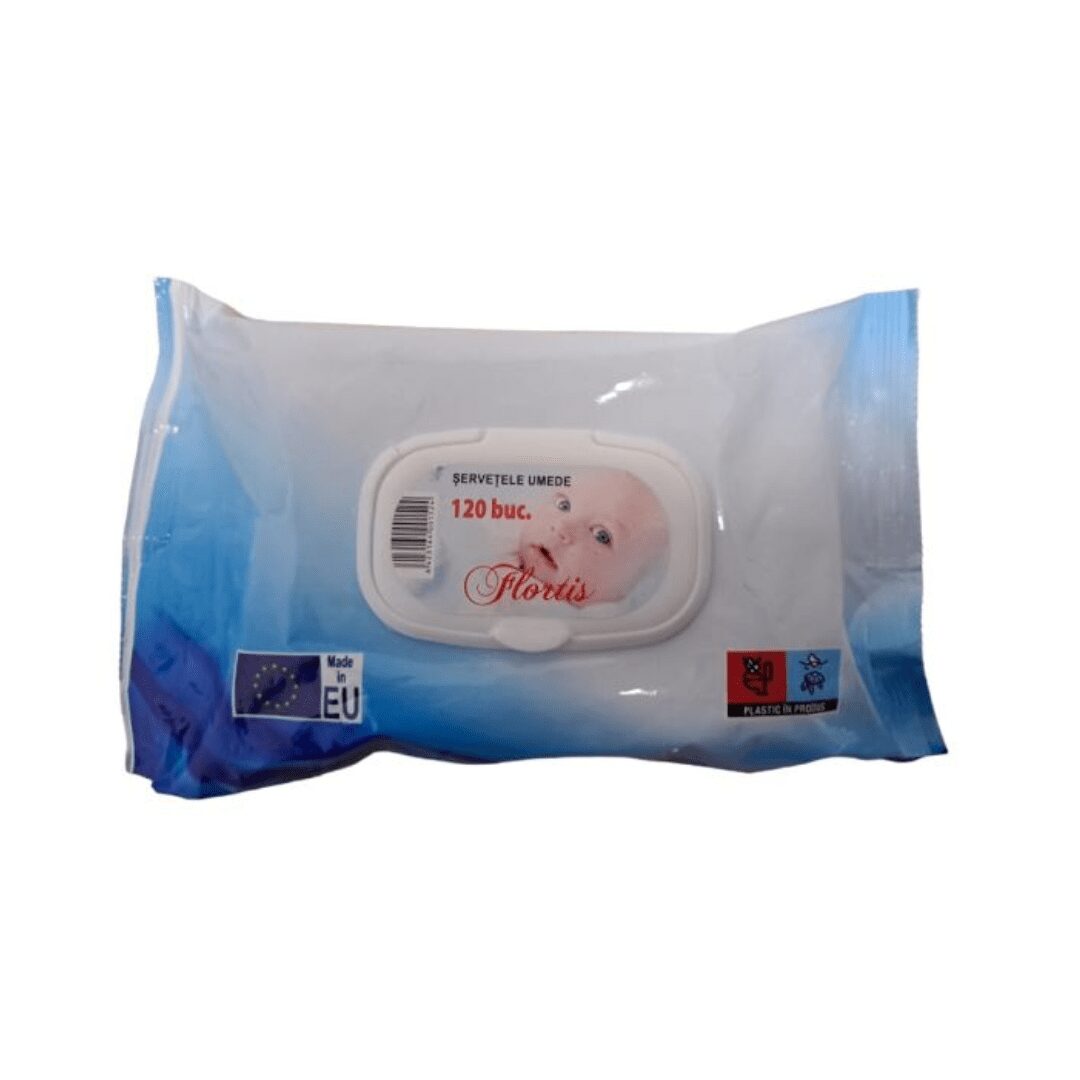 Servetele umede cu capac pentru bebelusi, Flortis 120buc