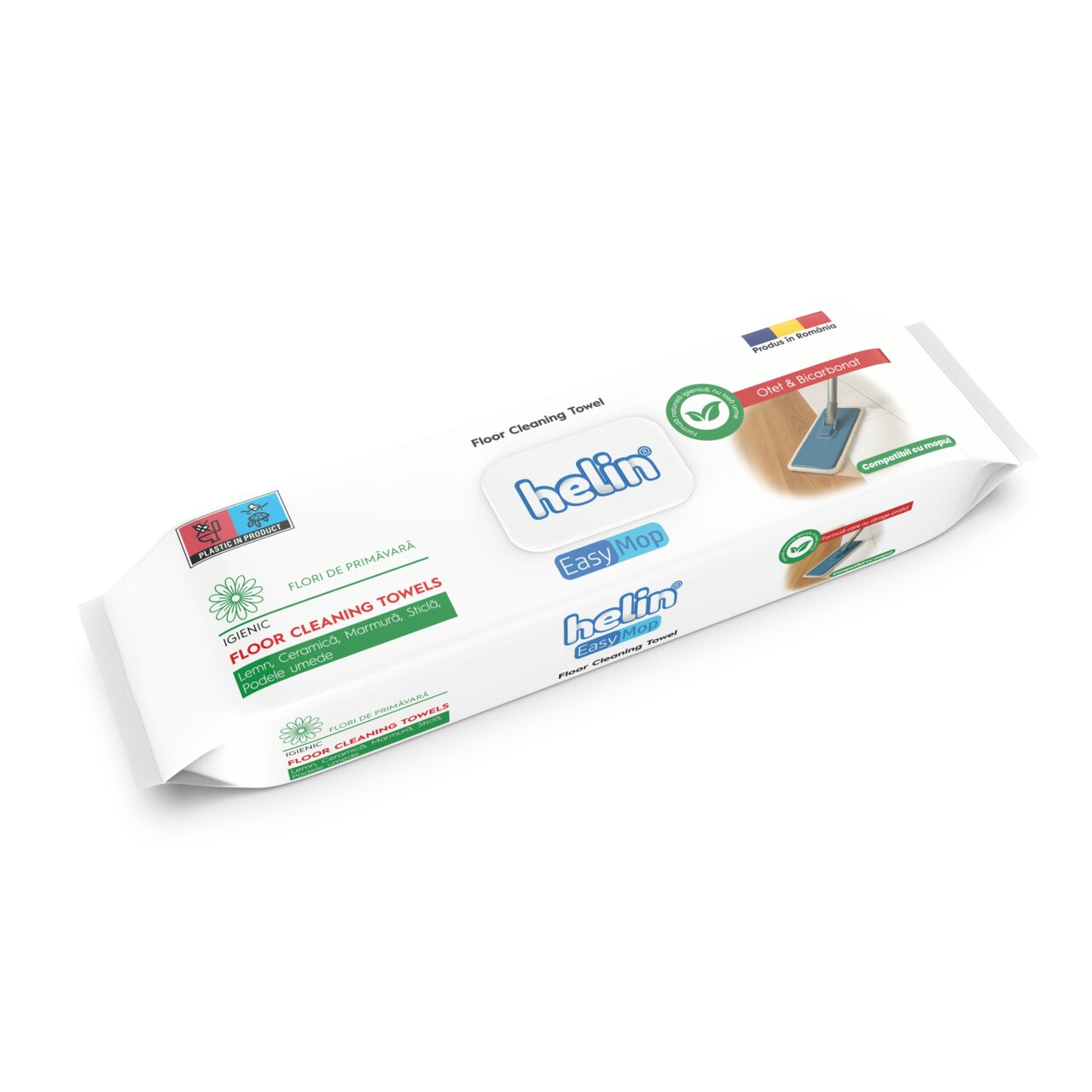 Servetele umede pentru mop si suprafete multiple Helin parfum Flori de Primavara cu bicarbonat si otet alb, 36 bucati, fara clor si coloranti
