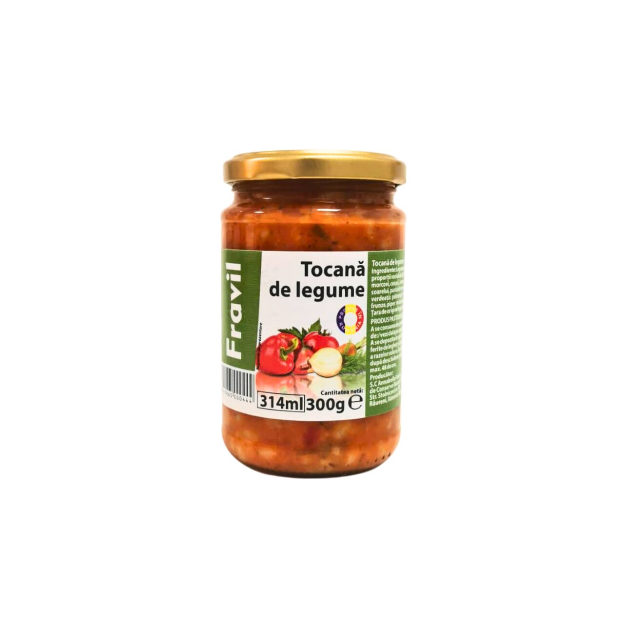 Tocana Fravil 300 g este ideală pentru cine caută o masă rapidă, fie ca fel principal, fie ca garnitură la preparate din carne sau cereale. Legumele sunt moi, bine condimentate, cu aromă naturală și aspect apetisant, gata să fie savurate imediat după încălzire.